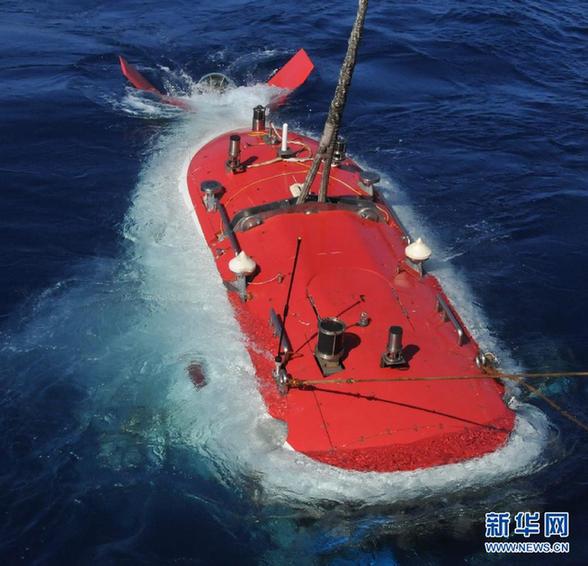 入水的“蛟龙”号载人潜水器(6月28日摄)。