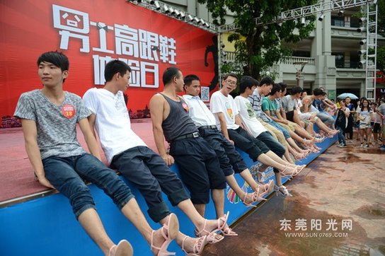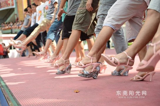 和郭先生一同体验穿高跟鞋的还有另外20多名男士,他们多为“90后”,有的是出于好奇参加活动,有的则是在女朋友的逼迫下不得不换上高跟鞋。“我觉得穿高跟鞋很轻松啊,没有大家说的那么难走路。”面对记者采访,一位体验者这样说道。不过也有几名男生表示“很痛苦”、“超难走”。