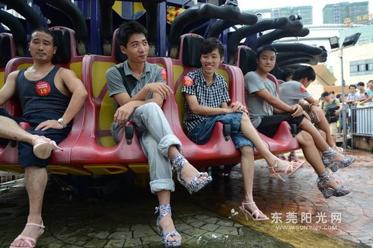 主办方表示,组织这样的高跟鞋男士体验活动,主要是为了宣传关爱女性同胞的理念。现场报名参加体验的男士穿着高跟鞋游玩景区10个游乐项目,就可获赠大礼包一份。当天下午2点半,“高跟鞋男士体验团”准时出发,在引导员的带领下体验了“九霄惊魂”、“穿越时空”、“急速风暴”等10个惊险刺激的游乐项目。来自道滘的朱先生很是兴奋,说起穿高跟鞋的感受,他深情地说:“回去一定要帮老婆按脚,做女人太不容易了。”