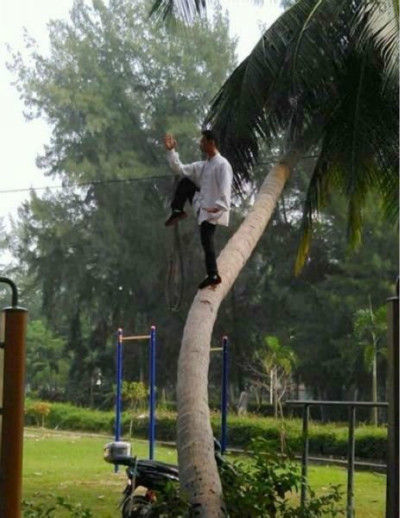 在椰子树上练功的“神人”(图片来源于网络)