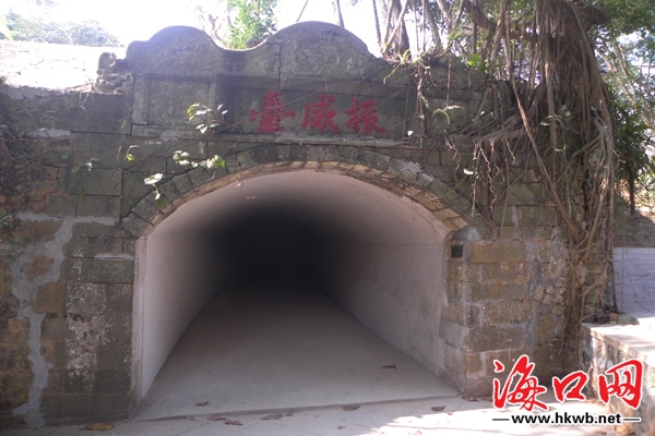 一进炮台的拱门,就看见锃亮的铺首出现在眼前,一股威严之气顿时显现,穿过拱门后是一面刻着炮台简介的浮雕,气势恢宏。从旁边的楼梯走上台阶,一株株古树粗壮的根茎仿佛在告诉人们,它们日夜守护在炮台旁,无论岁月如何蹉跎。