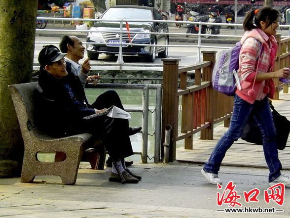 在海口街头出现了一女实习生为市民免费擦鞋。据了解,这位擦鞋的女孩,是外省某师范学校实习生,实习期间为企业推销产品,同时为自己挣点生活费,从劳动实践中进行学习,通过擦鞋促销擦鞋油。大学生暑假勤工俭学,真是好样的。