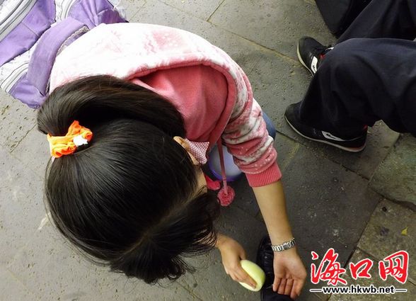 海口街头擦鞋女实习生