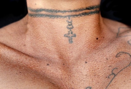波尼喜欢纹身,前不久她纹了一个十字架项链的图案。
