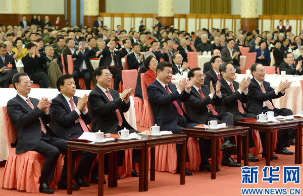 1月29日,中共中央、国务院在北京人民大会堂举行2014年春节团拜会。党和国家领导人习近平、李克强、张德江、俞正声、刘云山、王岐山、张高丽等同首都各界人士欢聚一堂,共迎新春。 新华社记者 马占成 摄