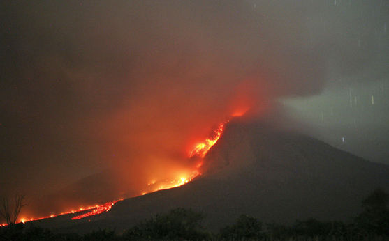 当地时间1月21日,锡纳朋火山喷发。Binsar Bakkara 摄