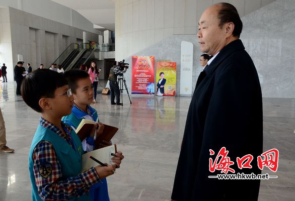 海口晚报小记者对现场委员进行采访工作。
