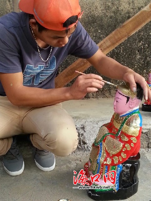 为冼夫人神像描漆换袍。通讯员 樊萍 摄