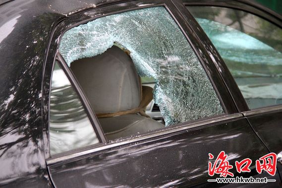3月13日凌晨,海口市青年路千家村小区内,一辆丰田私家车的玻璃被砸得面目全非。