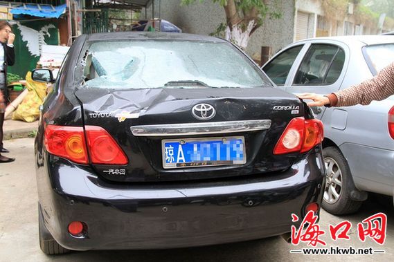 3月13日凌晨,海口市青年路千家村小区内,一辆丰田私家车的玻璃被砸得面目全非。