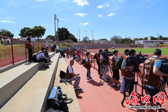 海口网6月30日消息(特约记者 鲁闵)巴西当地时间6月29日中午,法国队在巴西利亚进行了赛前踩场训练,尽管训练只开放15分钟,但还是吸引了上百名记者的关注。