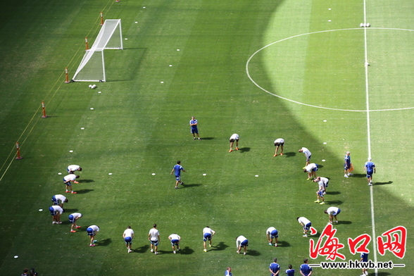 海口网直击法国队训练 开放15分钟吸引百名记者关注