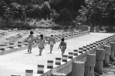 一所小学、一条河流、几个村庄。在桥的那头,有88名孩子每天要趟河4次,往返家与学校之间。几个月前,乐东黎族自治县阳光小学孩子上学难的问题,经媒体披露后,引起了当地有关部门的高度重视,目前连接两岸的一座桥梁已主体完工。但由于相关配套设施至今没有完善,孩子上学的安全隐患依然存在。因该桥梁配套设施不完善,前不久,住在学校对岸村庄的一名教师在去学校途中摔伤。记者了解到,目前该桥梁的配套设施建设尚处于停工状态。