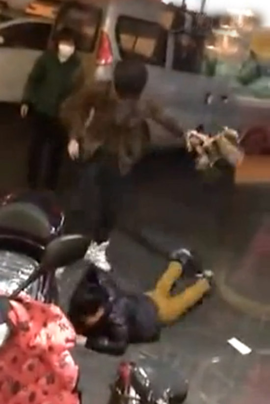 视频中一位身着时尚的年轻女子用脚狠踹男孩,男孩摔倒在地后,女子仍然实施暴行。虽然旁边有不少人在相劝,但女子全然不顾。女子一边对男孩骂骂咧咧,一边对拳打脚踢,在全长2分56秒的视频中,女子共对男孩背部踹了数脚。最重的一脚,踢在了男孩的头部,而旁边就是一辆电瓶车,差点撞上。男孩瞬间抱头痛哭起来。