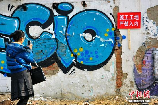上海废墟涂鸦吸眼球 留影勿忘安全(组图)