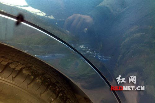 2月2日18时许,湖南省东安县第一小学门口,一名女子突然拿起环卫工人放在垃圾车内的铁铲,砸向一辆停在路边的雪弗兰小轿车,轿车车身当即被划出深深的痕迹。