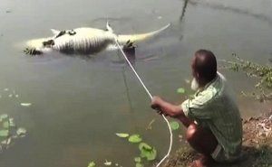 许多年来,游客们都会来到孟加拉西南部Bagerhat区的Hazrat Khan Jahan Ali神殿喂鳄鱼,相信这样做能在经济动荡的时候给他们带来好运。然而神殿里的祭司们表示,近几个月大批朝拜者用来,给鳄鱼献上祭品,鳄鱼很快就长胖了许多。