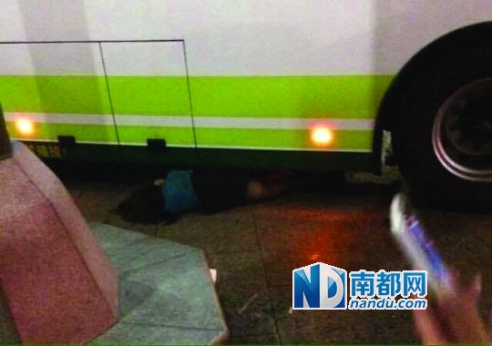 事发后一名蓝衣女子被压在车底。 图片来自网络