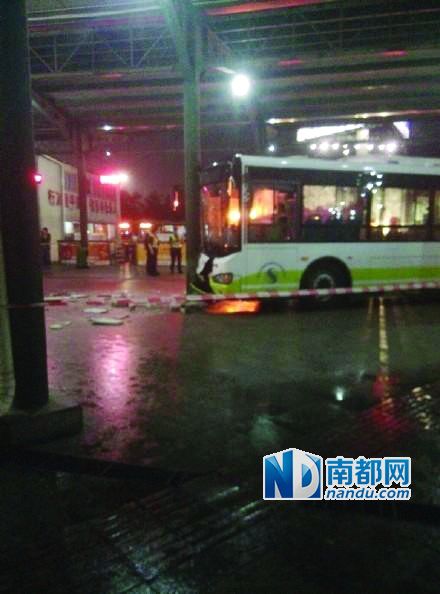 事发地点位于顺德客运总站公交站场B区,此处有十多趟公交线路候车闸口,候车区域为一个长长的钢结构候车棚。当事的317路公交车,为大良至容桂间跨镇线路。昨日下午,事发现场已恢复平静,包括317路公交车在内的所有线路均正常运营。事发闸口处也早已被清理得干干净净,不过从闸口处仍能发现事故的蛛丝马迹。被撞飞的约3米长铁栏杆,所有竖起的钢柱底部齐齐撞断均被焊接,最顶端的一根横着的拳头大钢管也被焊接。离闸口超过10米远的一根候车棚钢梁也多处被重新油漆。