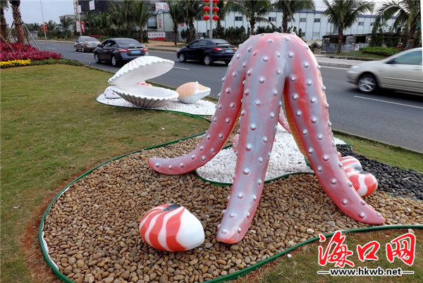 海南四周环海,海产品、海工艺品随处可见,利用海螺、螃蟹、贝壳等造型装饰路边绿化带也是美美哒,市民纷纷点赞!看着这些巨型海螺贝壳装饰在陆地绿化带上,是不是让你感受到一些海洋的气息呢?