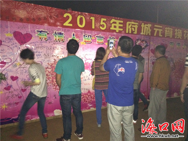 在现场,还有不少人在红绳上系上了自己对新年的新期望,在祝福墙上写下了自己的“爱情宣言”。“周婉君,我爱你!”、“希望今年能够找到心上人”、“祝全家人羊年心想事成”、“祝愿国家繁荣昌盛,海口更加美丽!”......希望这些祝福在今年都能够成功实现。