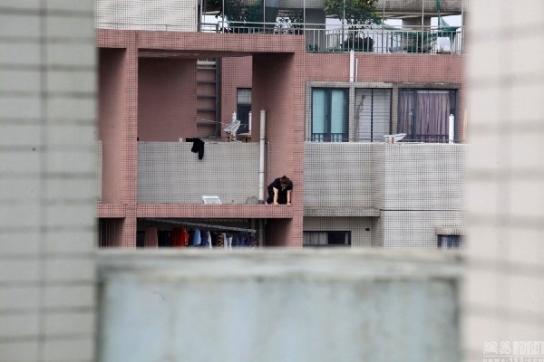 据悉,民警到达现场后,女事主情绪激动,思想波动较大。图为警察将一张椅子放在欲跳楼女子旁边给她休息,并翻墙过来营救。