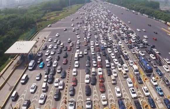 2015年5月1日,随着五一节假日的到来,各地开始迎来游客高峰。而在这样的节假日中,拥挤的人群和拥堵的车流成了其最常见的场景。图为江苏的长江二桥发生拥堵,4公里的路程几乎都堵成“停车场”。