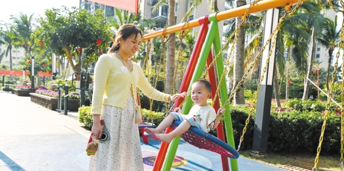 海口一些家长边带孩子边玩手机,安全隐患多