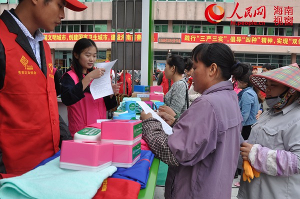 | 秀英区志愿者在海口西站向过往旅客发放双创宣传品 |