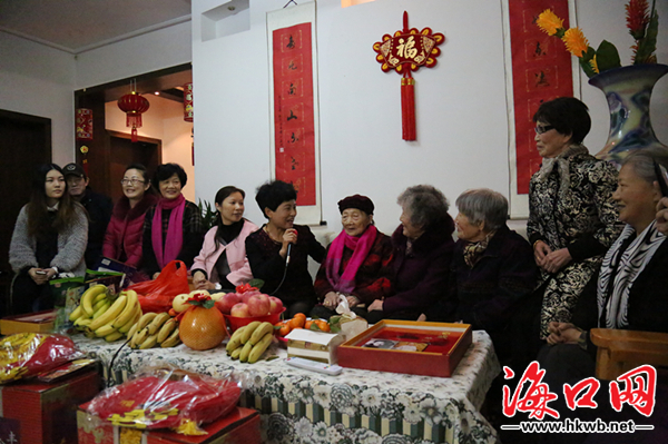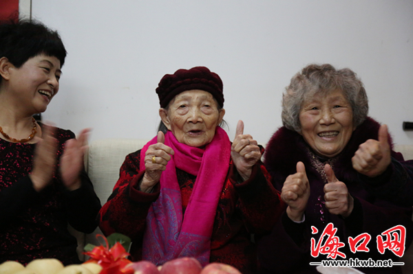 海口网2月3日消息(记者林韦玮 特约记者吴彭保 通讯员陈创淼 摄影报道)“新春快乐,健康长寿!”3日下午,东方洋社区一住户内其乐融融,欢声笑语不断。海口秀英区委宣传部、海秀街道办、东方洋社区干部等一同来到105岁的汤翠英阿婆家中,提前给老人一家送上节日的问候和新春的祝福。