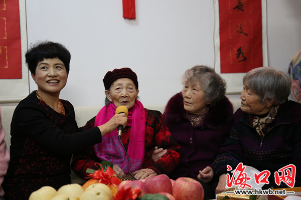 据了解,汤阿婆1911年出生于湖南益阳,育有4男6女共10位儿女。老人历经艰辛,将儿女培养成才,他们或从军从政、或从医从教,均在各自的岗位上取得了不俗的成绩。目前汤阿婆有子孙93人,居住在海口、武汉、长沙等地,每年春节一大家子人都会相约回来陪老人一起过年。“从小母亲就教导我们做人要诚实、做事要踏实。”汤阿婆的十儿子夏国强告诉记者,虽然是很简单的两句话,却成了他们兄弟姐妹一生的信条。慰问现场,汤阿婆的一位女婿借诗词《卜算子·咏梅》,赞颂母亲如梅花般凌寒独放的品格。