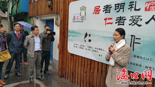 当天上午,考察团一行首先来到海口“双创”示范点之一居仁坊,学习参观百年老街区“双创”改造情况。2015年7月31日,海口“双创”工作全面启动,居仁坊社区居委会从社区的硬件设施、文化建设等方面入手,在保持社区中老街原有风貌的前提下,对居仁坊整体环境进行整治、规范和提升。居仁坊如今已成为海口市500多条老旧街巷的标杆。“海口以这样的方式改造老城区的街道,既美化了环境又保留了当地的文化,值得称赞。”东方市爱卫办主任吴伟说。