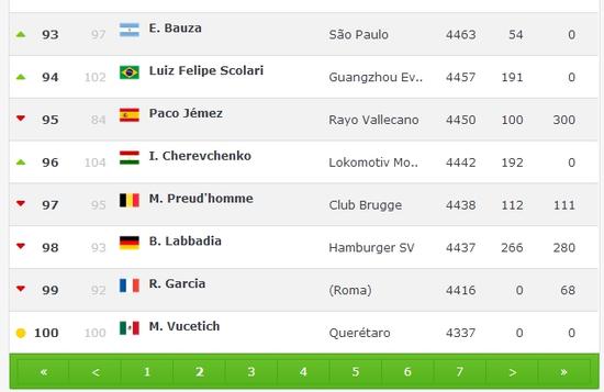 广州恒大主帅斯科拉里的最新积分为4457分,在世界范围内排名第94位,较上期提升8位,在中超教练中排名第1位。斯科拉里不仅来华执教后首次进入教练排名TOP100,而且还是目前唯一排名前100位的中超教练。山东鲁能主教练曼诺-梅内塞斯排名世界第126位,较上期提高9位,积分为3764分,是中超排名第2高的教练。上海上港主教练埃里克森排名世界第255位,这是他的个人最高排名,在中超教练中排名第3位。上海绿地申花主教练曼萨诺排名世界第334位,较上期提升22位,在中超教练中排名第4位。