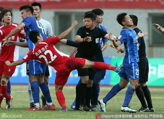 ●2014年7月24日,足协杯第4轮较量,武汉宏兴主场对阵青岛海牛。上半时,青岛海牛队球员铲倒主队球员,但主裁却拒绝判罚点球。随后情绪异常激动的武汉宏兴队球员,便围攻当值主裁。
