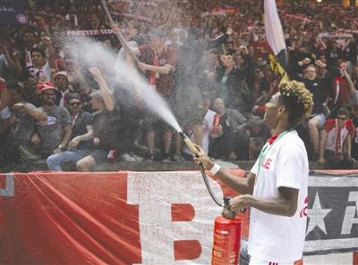 拜仁球员改用喷水庆祝