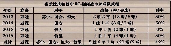 值得一提的是,崔龙洙此前每每能够在碰中超球队时取得好成绩,也是其被中超球队关注到的一个主要原因。执教首尔FC期间,崔龙洙率队在亚冠赛场累计12次对阵中超球队,其中含有广州恒大、北京国安、江苏苏宁与山东鲁能。(2011年亚冠,首尔FC与杭州绿城同组,当时崔龙洙非首尔FC主教练,故而未计入这一轮统计)