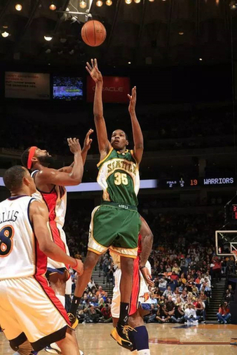 2007年选秀大会,杜兰特以首轮第二顺位,也就是常说的“榜眼”身份被西雅图超音速队选中,送走了雷·阿伦之后,他被看做这个马上就要搬家球队的最新希望,他修长的身材也被看作是下一个超级巨星,是加内特和麦蒂的合体。