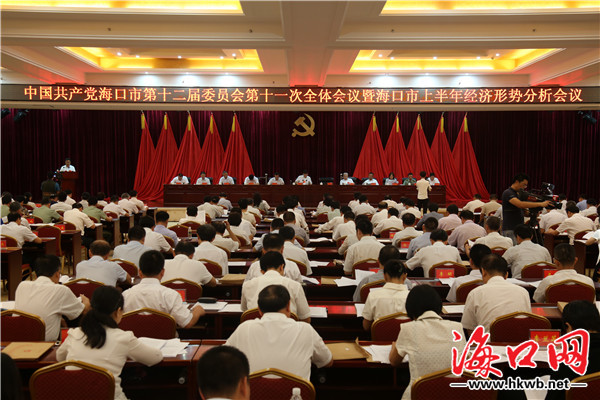 海口网7月27日消息(记者林韦玮 摄影报道)7月27日上午,中共海口市委十二届十一次全会暨全市上半年经济形势分析会议在市第二行政办公区召开。会议号召全市上下要把思想和行动高度统一到中央的决策部署上来,在省委的坚强领导下,团结拼搏、乘胜前进,不断激发改革活力、创新动能、奋进勇气,坚决打赢供给侧结构性改革攻坚战,全力以赴完成全年各项目标任务,为率先在全省全面建成小康社会不懈奋斗。