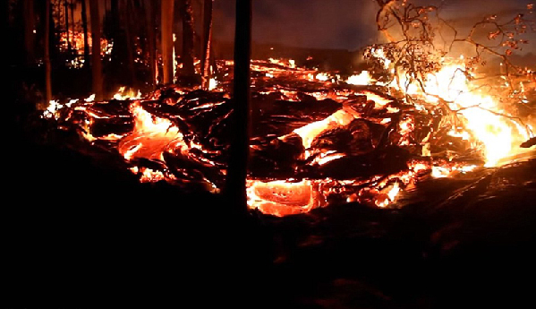 该航拍视频记录下了7月9日基拉韦厄火山喷发后,熔岩流向夏威夷火山国家公园的过程。摄影师从不同角度拍摄了熔浆的流向,期间还可以听到树木烧焦爆裂的声音。