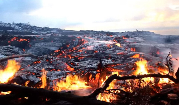 夏威夷活火山喷发 熔浆吞噬森林