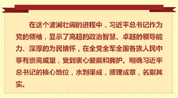 “站在新的历史起点、肩负新的历史使命,确立习近平同志党中央的核心、全党的核心地位,是实践的选择、历史的选择,是全党的选择、人民的选择,是党心所向、人心所向。”中央委员们这样说。