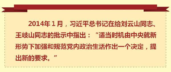 在开展党的群众路线教育实践活动和“三严三实”专题教育中,不少同志建议结合新的形势,制定一个加强和规范党内政治生活的文件。