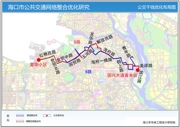金龙路——玉沙路——国贸路——龙昆北路——玉河路——八灶路——龙华二横路——龙华路——解放西路——新华南路——东湖路——博爱南路——海府路——海府一横路——群上路——美祥路——青年路——敬贤路