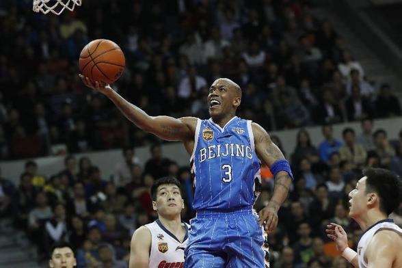 2月5日,北京首钢队球员马布里(中)在比赛中进攻。当日,在2016-2017赛季中国男子篮球职业联赛(CBA)第32轮的比赛中,广东东莞银行队主场以103比98战胜北京首钢队。新华社记者吴鲁摄