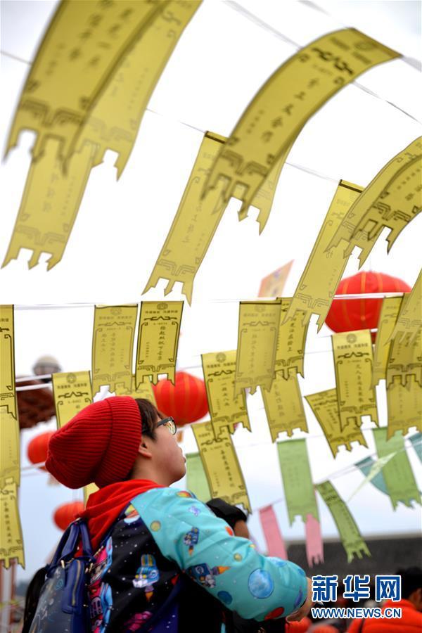 2月11日,游人在贵州省遵义市举办的元宵灯谜会上猜灯谜。当日,贵州省遵义市举办元宵灯谜会,欢庆元宵佳节。 新华社发(罗星汉摄)