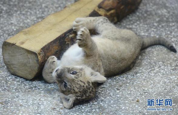 4月12日,在俄罗斯叶卡捷琳堡动物园,一只新出生的非洲狮幼崽在玩耍。新华社/卫星社