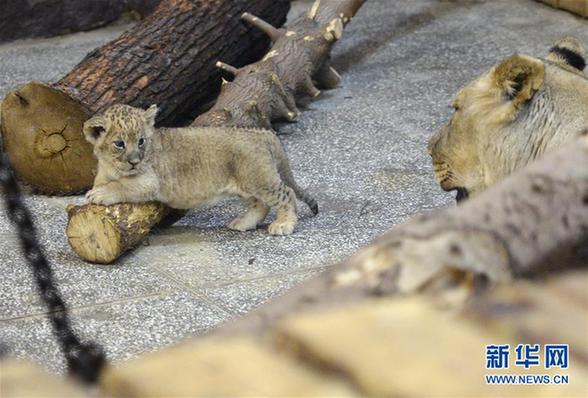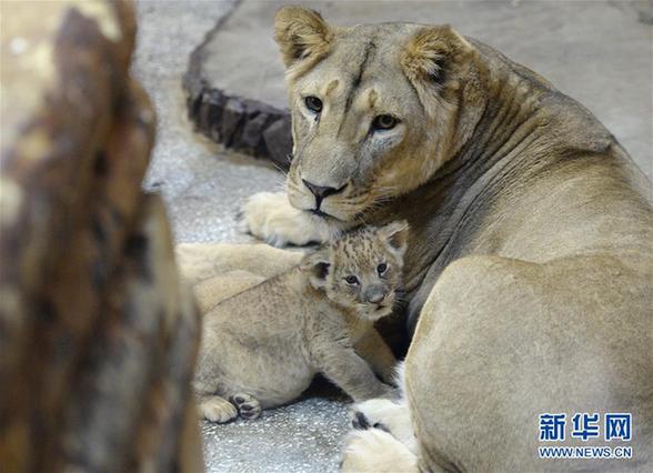 4月12日,在俄罗斯叶卡捷琳堡动物园,一只新出生的非洲狮幼崽和妈妈在一起。 新华社/卫星社