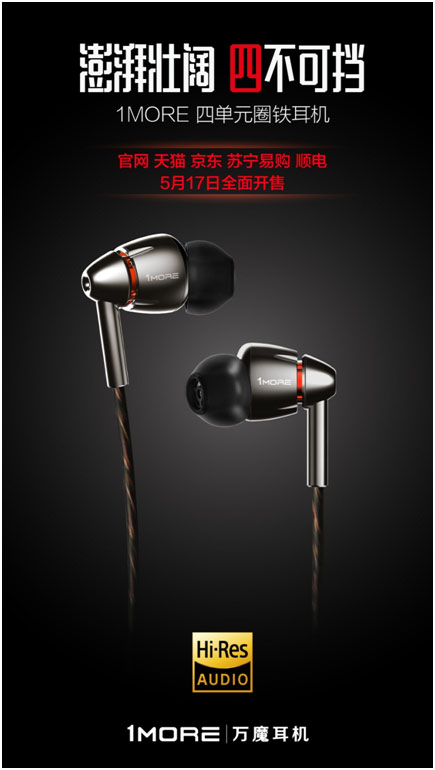 据了解,1MORE四单元圈铁耳机首发售价1299元,苏宁易购、顺电已全面上架。
