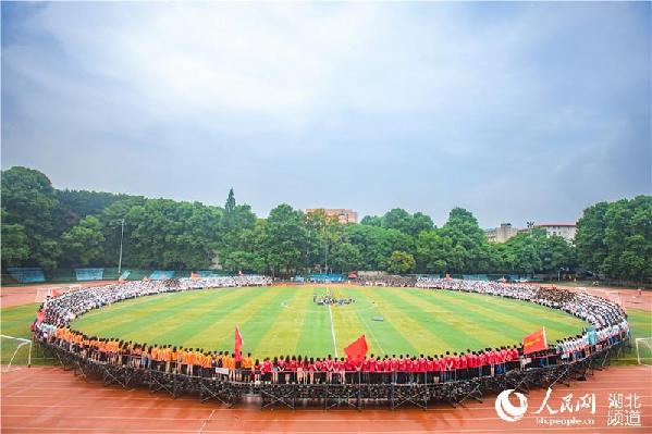 6月12日下午2点,华中师范大学2017届4500名毕业生齐集佑铭体育场拍摄“最牛毕业照”,定格同学们的大学记忆。据了解,这张霸气毕业照洗印出来可长达10米。为此启用了全景亿级像素相机和航拍小飞机。