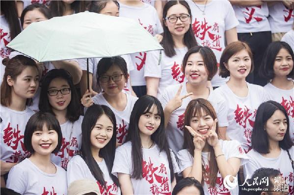 6月12日下午2点,华中师范大学2017届4500名毕业生齐集佑铭体育场拍摄“最牛毕业照”,定格同学们的大学记忆。据了解,这张霸气毕业照洗印出来可长达10米。为此启用了全景亿级像素相机和航拍小飞机。